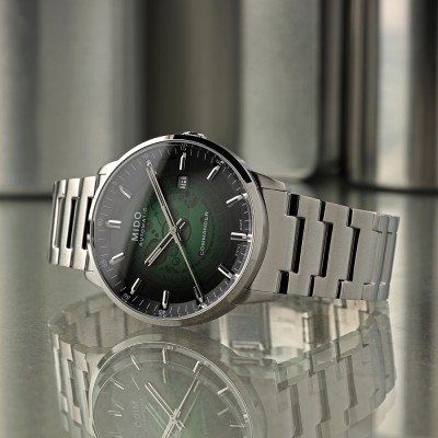 The Mido Commander watch series has been around since 1959. Over the years, the watches have been updated and, of course, equipped with the latest technical innovations. The Commander Gradient watch has a special dial, made of transparent acrylic, which features a smoky color gradient, becoming increasingly opaque around the edges. This means the inner workings of the watch are visible through the dial – although shrouded by a mysterious color effect, while the date at 3 o'clock and the baton shaped hands stand out perfectly. The watch is powered by a calibre 80 automatic movement with a stunning 80 hours power reserve! This movement, with beautifully ‘guilloched’ rotor, is not only visible from the front, but also from the back of the watch.