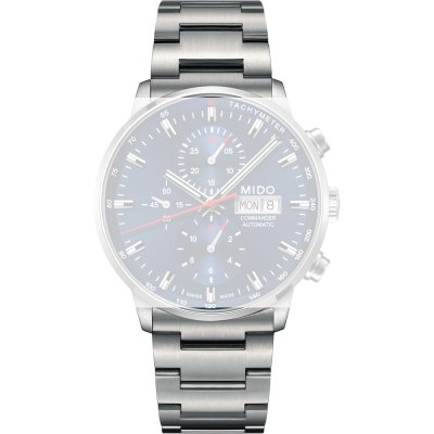 This MIDO watch strap is made of stainless steel and is attached to the watch by means of push pins. The band has a width of 22 mm and is closed by means of a butterfly clasp with push buttons. The strap has no straight mount which means that this strap is only suitable for the watches listed below.
