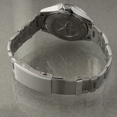 The Mido Ocean Star 200C is a classic diving watch that combines functionality and style. The dial is engraved with a fitting stylized wave pattern and contains a day-date display at 3 o’clock. Typical dive watch features are the screw down crown with crown guards, individually applied indexes coated with white Super-Luminova® and of course 20 ATM water resistance. The watch’s unidirectional dive bezel deserves a special mention: inlayed with satin soft ceramic, color matching the dial. The automatic Caliber 80 movement, with a power reserve of up to 80 hours, ensures outstanding reliability, in a watch that is ideal for watch lovers looking for performance and good looks on a day-to-day basis.