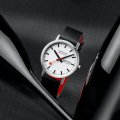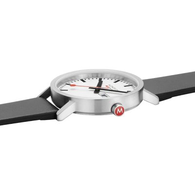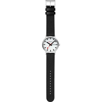 This Mondaine watch has a case made of Steel silver with a diameter of 40 mm and is fitted with a leather strap. Inside the case lies a Ronda movement and the watch features a Mineral crystal.