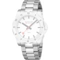 This Mondaine watch strap is made of metal and is attached to the watch by means of push pins. The band has a width of 22 mm and is closed by means of a deployment clasp with push buttons. The strap has no straight mount which means that this strap is only suitable for the watches listed below.