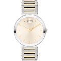 This Movado watch has a case made of Steel silver with a diameter of 34 mm and is fitted with a Steel silver strap.
