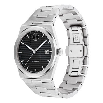 This Movado watch has a case made of Steel silver with a diameter of 39 mm and is fitted with a Steel silver strap. Inside the case lies a Sellita movement and the watch features a Sapphire crystal.