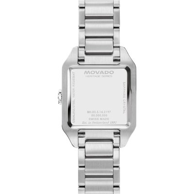 This Movado watch has a case made of Steel silver with a diameter of 25 mm and is fitted with a Steel silver strap. Inside the case lies a Ronda movement and the watch features a Sapphire crystal.