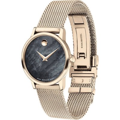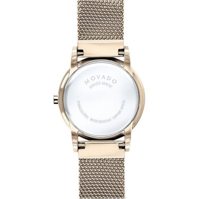 This Movado watch has a case made of Steel silver with a diameter of 28 mm and is fitted with a Steel silver strap. Inside the case lies a ETA movement and the watch features a Sapphire crystal.