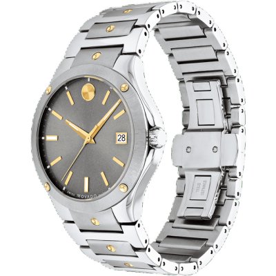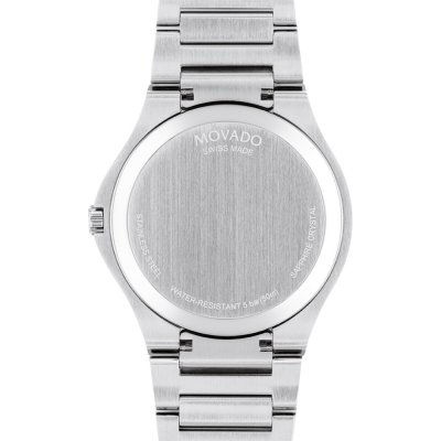 This Movado watch has a case made of Steel silver with a diameter of 41 mm and is fitted with a Steel silver strap. Inside the case lies a ETA movement and the watch features a Sapphire crystal.