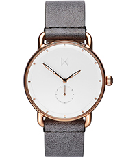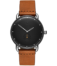 This MVMT watch has a stainless steel case 41mm in diameter and is fitted with a metal strap. Inside the case lies a quartz movement and the watch features a hardened mineral crystal.