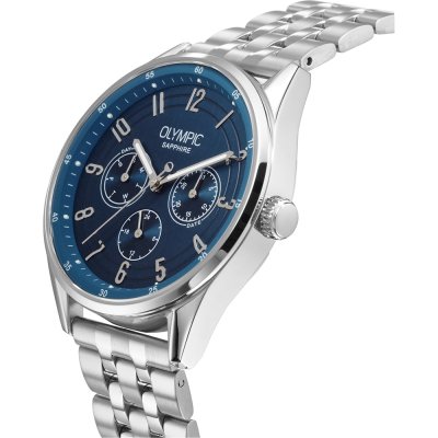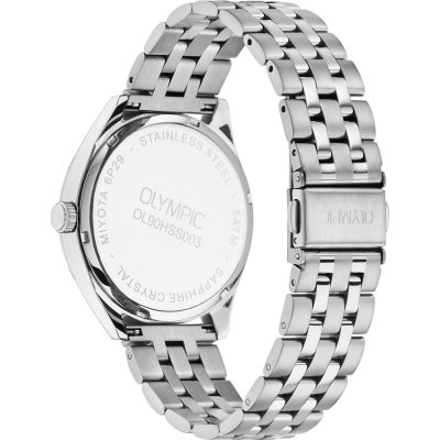 This Olympic watch has a case made of Steel silver with a diameter of 40 mm and is fitted with a Steel silver strap. Inside the case lies a Miyota movement and the watch features a Sapphire crystal.