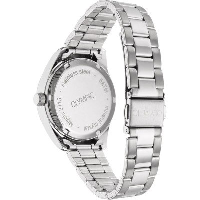 This Olympic watch has a case made of Steel silver with a diameter of 33 mm and is fitted with a Steel silver strap. Inside the case lies a Miyota movement and the watch features a Mineral crystal.