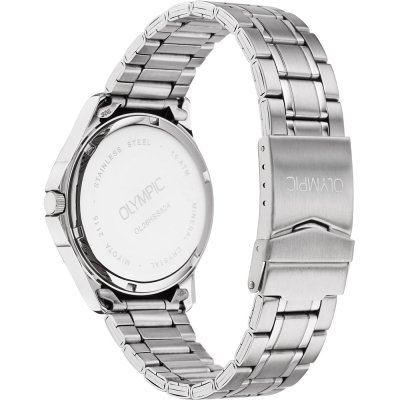 This Olympic watch has a case made of Steel silver with a diameter of 39 mm and is fitted with a Steel silver strap. Inside the case lies a Miyota movement and the watch features a Mineral crystal.