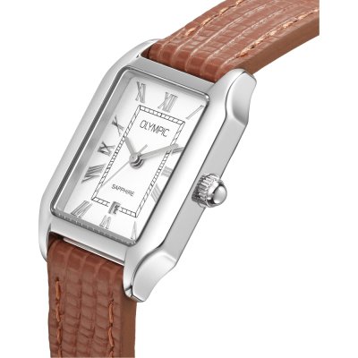 This Olympic watch has a case made of Steel silver with a diameter of 33 mm and is fitted with a leather strap. Inside the case lies a Miyota movement and the watch features a Sapphire crystal.