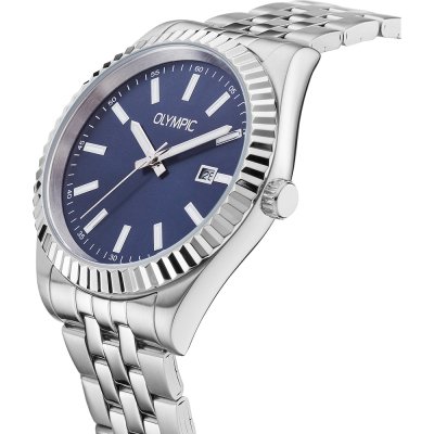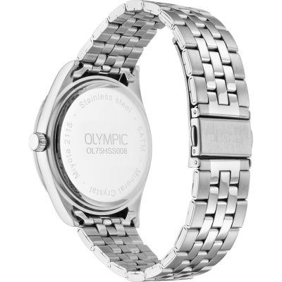 This Olympic watch has a case made of Steel silver with a diameter of 40 mm and is fitted with a Steel silver strap. Inside the case lies a Miyota movement and the watch features a Mineral crystal.