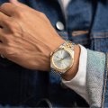 The watch is 5ATM. This means the watch is suitable for showering. The watch comes with 3 Year Warranty.