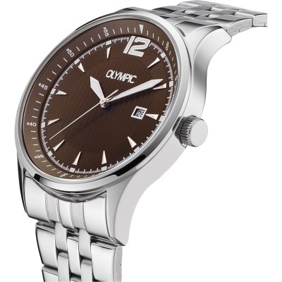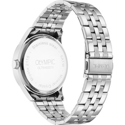 This Olympic watch has a case made of Steel silver with a diameter of 43 mm and is fitted with a Steel silver strap. Inside the case lies a Miyota movement and the watch features a Mineral crystal.