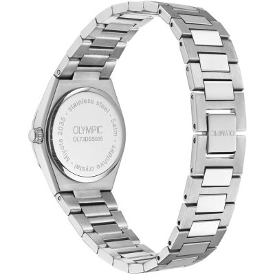 This Olympic watch has a case made of Steel silver with a diameter of 29 mm and is fitted with a Steel silver strap. Inside the case lies a Miyota movement and the watch features a Sapphire crystal.