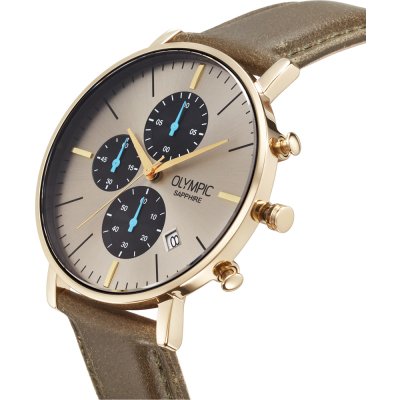 This Olympic watch has a case made of Steel silver with a diameter of 40 mm and is fitted with a leather strap. Inside the case lies a Seiko Instruments Inc. movement and the watch features a Sapphire crystal.