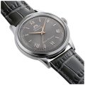 This Orient watch has a case made of Steel silver with a diameter of 38 mm and is fitted with a leather strap. Inside the case lies a Epson movement and the watch features a Mineral crystal.