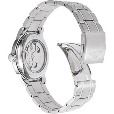 This Orient watch has a case made of Steel silver with a diameter of 38 mm and is fitted with a Steel silver strap. Inside the case lies a Orient movement and the watch features a Mineral crystal.