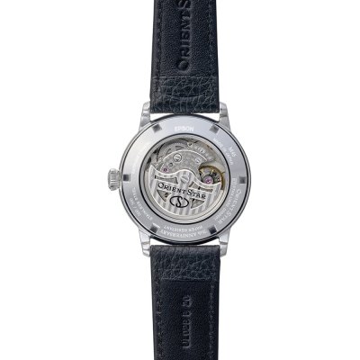 This Orient watch has a case made of Steel silver with a diameter of 39 mm and is fitted with a leather strap. Inside the case lies a Epson movement and the watch features a Mineral crystal.