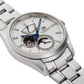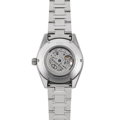 This Orient watch has a case made of Steel silver with a diameter of 41 mm and is fitted with a Steel silver strap. Inside the case lies a Orient movement and the watch features a Single anti-reflective sapphire crystal.