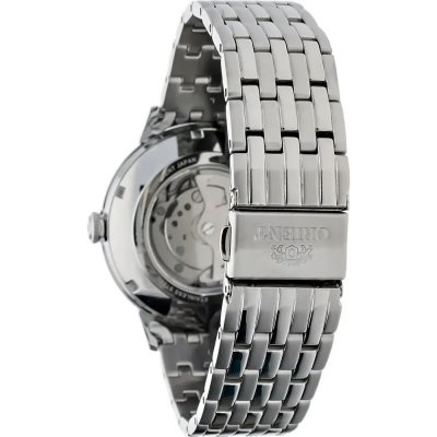 This Orient watch has a case made of Steel silver with a diameter of 42.4 mm and is fitted with a Metal strap. Inside the case lies a Orient movement and the watch features a Sapphire crystal.