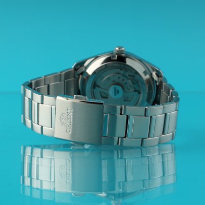 This Orient watch has a case made of Steel silver with a diameter of 38.5 mm and is fitted with a Steel silver strap. Inside the case lies a Orient movement and the watch features a Sapphire crystal.