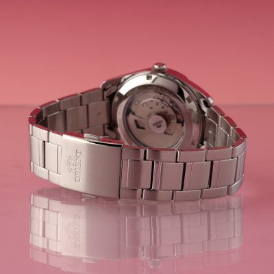 This Orient watch has a case made of Steel silver with a diameter of 38.5 mm and is fitted with a Steel silver strap. Inside the case lies a Orient movement and the watch features a Sapphire crystal.