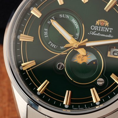 This Orient watch has a case made of Steel silver with a diameter of 41 mm and is fitted with a Steel silver strap. Inside the case lies a Epson movement and the watch features a Sapphire crystal.
