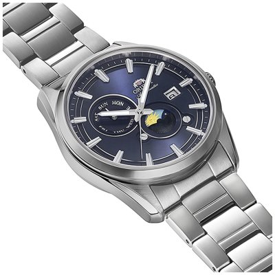 This Orient watch has a case made of Steel silver with a diameter of 41 mm and is fitted with a Steel silver strap. Inside the case lies a Epson movement and the watch features a Sapphire crystal.
