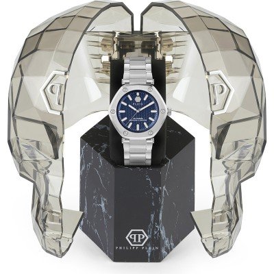 This Philipp Plein watch has a case made of Steel silver with a diameter of 38 mm and is fitted with a Steel silver strap. Inside the case lies a Miyota movement and the watch features a Mineral crystal.