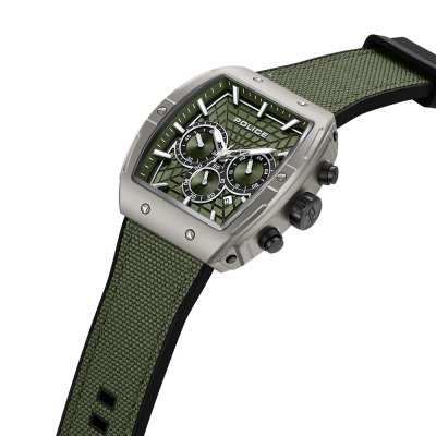 This Police watch has a case made of metal alloy with a diameter of 50 mm and is fitted with a rubber strap. Inside the case lies a Sunon movement and the watch features a Mineral crystal.