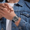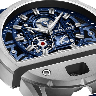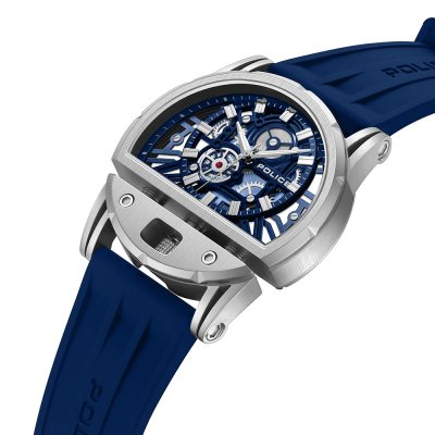 This Police watch has a case made of Steel silver with a diameter of 46 mm and is fitted with a rubber strap. Inside the case lies a Miyota movement and the watch features a Mineral crystal.