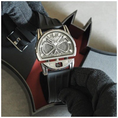 This awe inspiring watch is based on the unstoppable force of the Dark knight himself, commanding attention and respect. The 46x53mm case is split into two halves, each containing carefully thought out details, such as industrial screws and a honeycomb-textured dial and a hidden crown at 6 o’clock. This limited edition watch comes complete with a collectible box and stand.