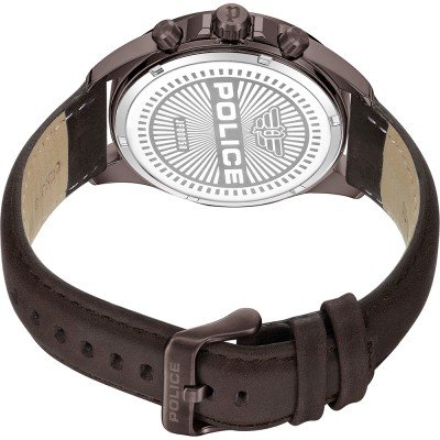 This Police watch has a case made of Steel silver with a diameter of 45 mm and is fitted with a leather strap. Inside the case lies a Seiko Instruments Inc. movement and the watch features a Mineral crystal.