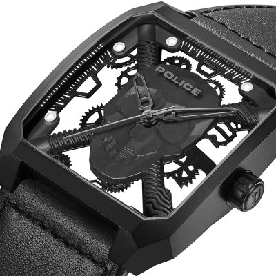 This Police watch has a case made of Steel silver with a diameter of 39 mm and is fitted with a leather strap. Inside the case lies a Miyota movement and the watch features a Mineral crystal.