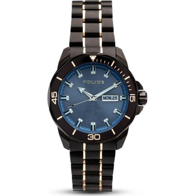 This Police watch has a case made of Steel silver with a diameter of 43 mm and is fitted with a Metal strap. Inside the case lies a Miyota movement and the watch features a Mineral crystal.