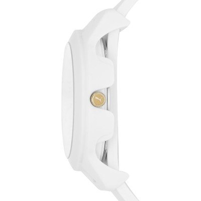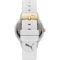 This Puma watch has a case made of Resin with a diameter of 38 mm and is fitted with a rubber strap. Inside the case lies a Seiko movement and the watch features a Mineral crystal.