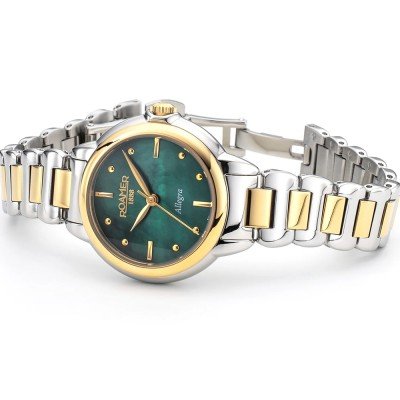 This Roamer watch has a case made of Steel silver with a diameter of 32 mm and is fitted with a Steel silver strap. Inside the case lies a Ronda movement and the watch features a Sapphire crystal.
