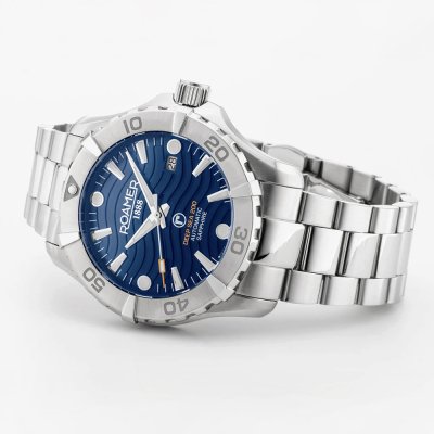 This Roamer watch has a case made of Steel silver with a diameter of 43 mm and is fitted with a Steel silver strap. Inside the case lies a Soprod movement and the watch features a Sapphire crystal.