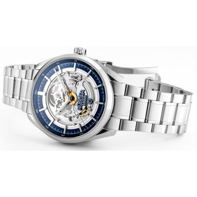 This Roamer watch has a case made of Steel silver with a diameter of 42 mm and is fitted with a Steel silver strap. Inside the case lies a Soprod movement and the watch features a Single anti-reflective sapphire crystal.