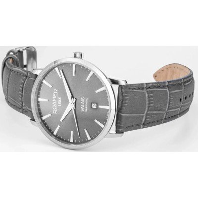This Roamer watch has a case made of Steel silver with a diameter of 42 mm and is fitted with a leather strap. Inside the case lies a Ronda movement and the watch features a Sapphire crystal.