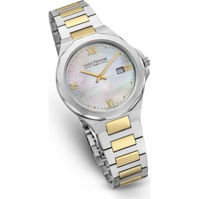 This Saint Honoré watch has a case made of Steel silver with a diameter of 33 mm and is fitted with a Steel silver strap. Inside the case lies a Ronda movement and the watch features a Mineral crystal.
