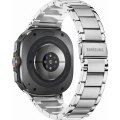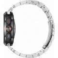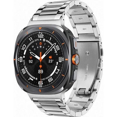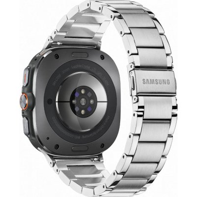 This Samsung watch has a case made of Titanium with a diameter of 47 mm and is fitted with a Steel silver strap.