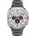 This Samsung watch has a case made of Titanium with a diameter of 47 mm and is fitted with a Steel silver strap.