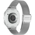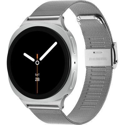 This Samsung watch has a case made of Aluminum with a diameter of 40 mm and is fitted with a Steel silver strap.