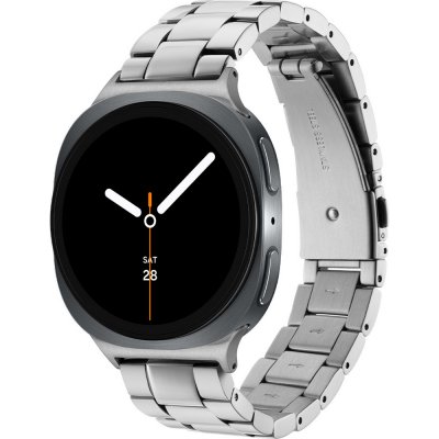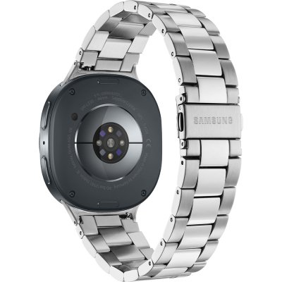 This Samsung watch has a case made of Aluminum with a diameter of 44 mm and is fitted with a Steel silver strap. Inside the case lies a Samsung movement and the watch features a Sapphire crystal.