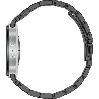 This Samsung watch has a case made of Aluminum with a diameter of 44 mm and is fitted with a Steel silver strap. Inside the case lies a Samsung movement and the watch features a Sapphire crystal.