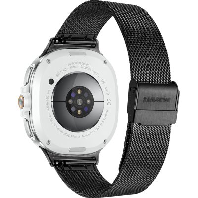 This Samsung watch has a case made of Aluminum with a diameter of 46 mm and is fitted with a Leather over silicone strap. Inside the case lies a Samsung movement and the watch features a Sapphire crystal.