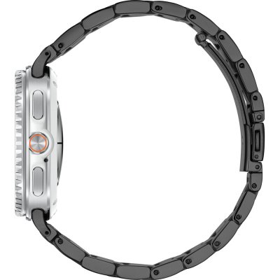 This Samsung watch has a case made of Aluminum with a diameter of 46 mm and is fitted with a Leather over silicone strap. Inside the case lies a Samsung movement and the watch features a Sapphire crystal.