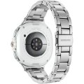 This Samsung watch has a case made of Aluminum with a diameter of 46 mm and is fitted with a Leather over silicone strap. Inside the case lies a Samsung movement and the watch features a Sapphire crystal.